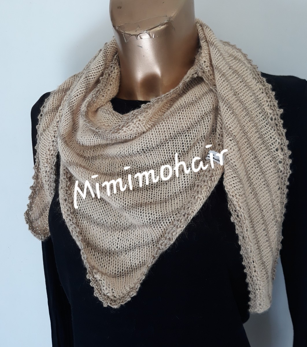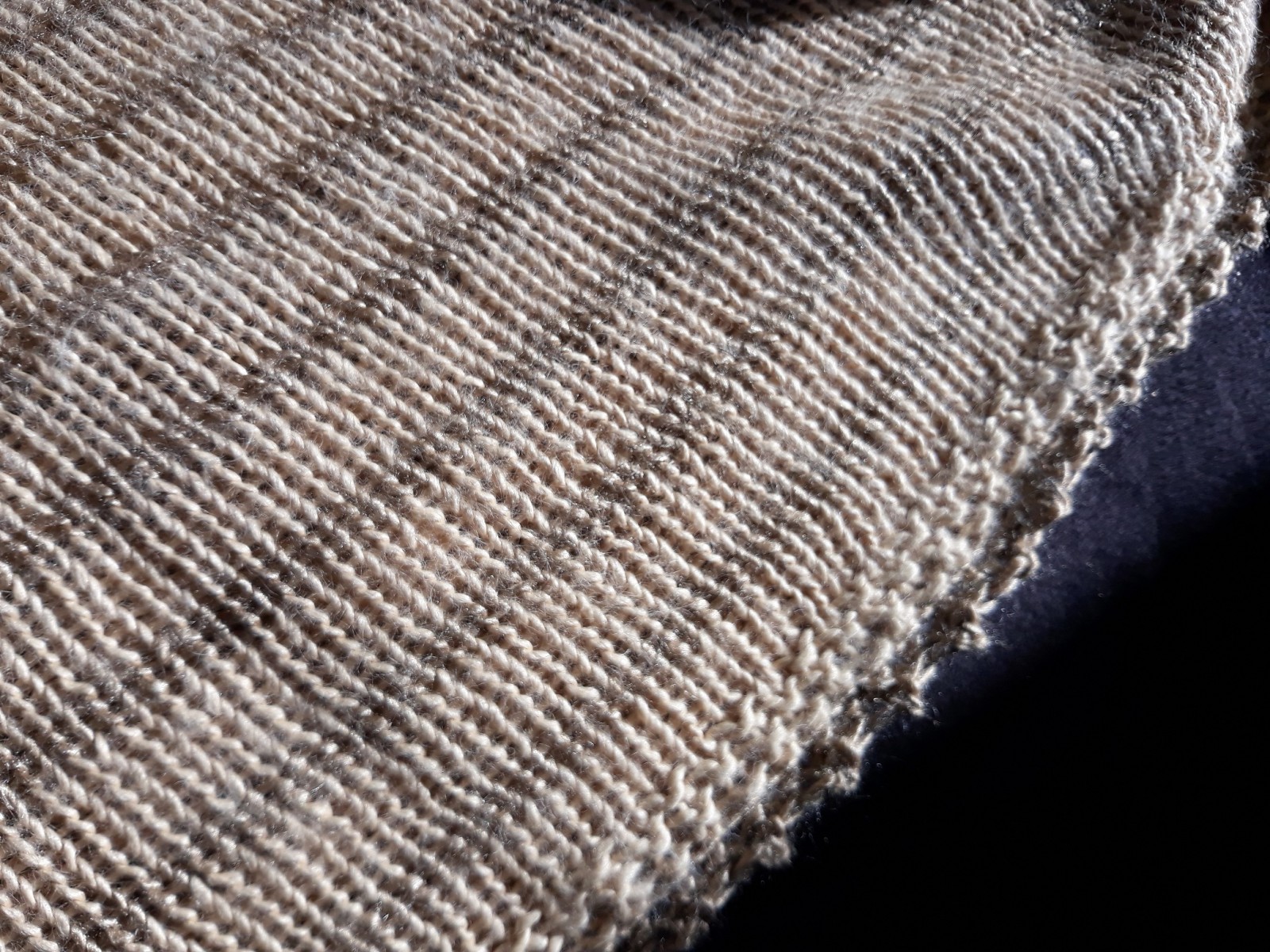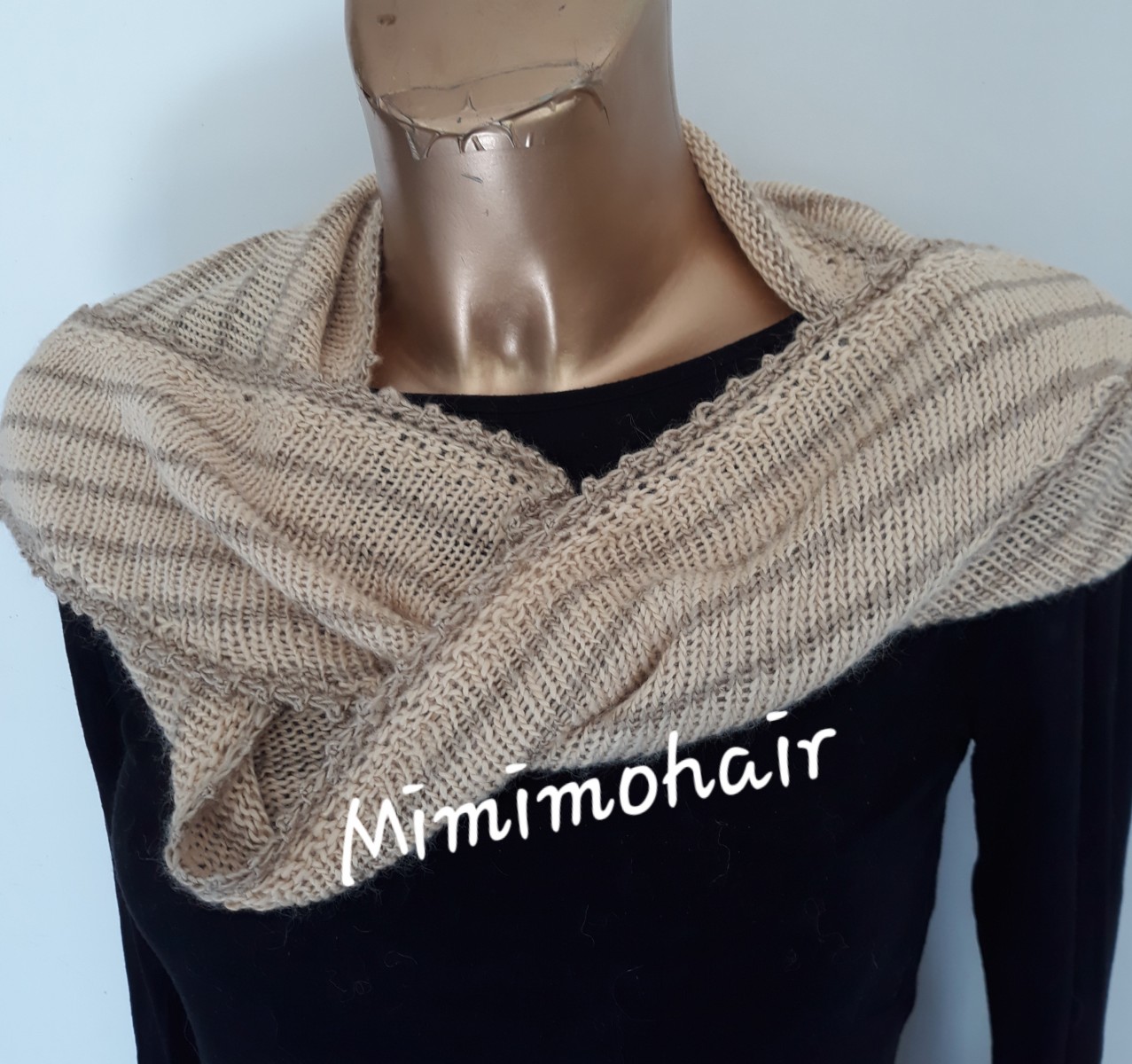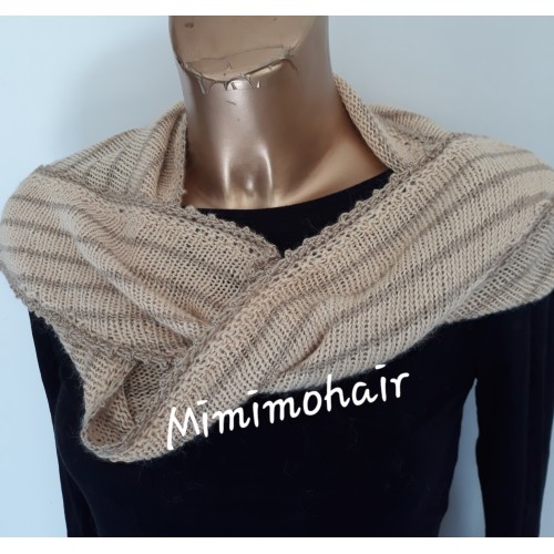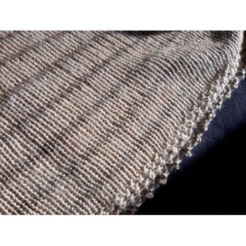 Chèche 100% fibres de soja et rayures en Soie Muga. Fibres filées au rouet.