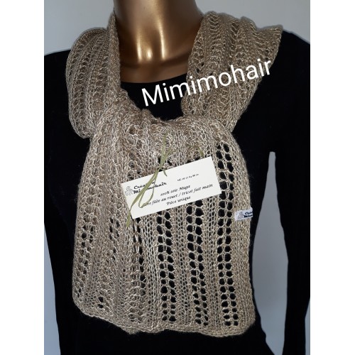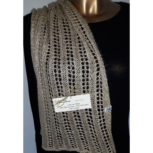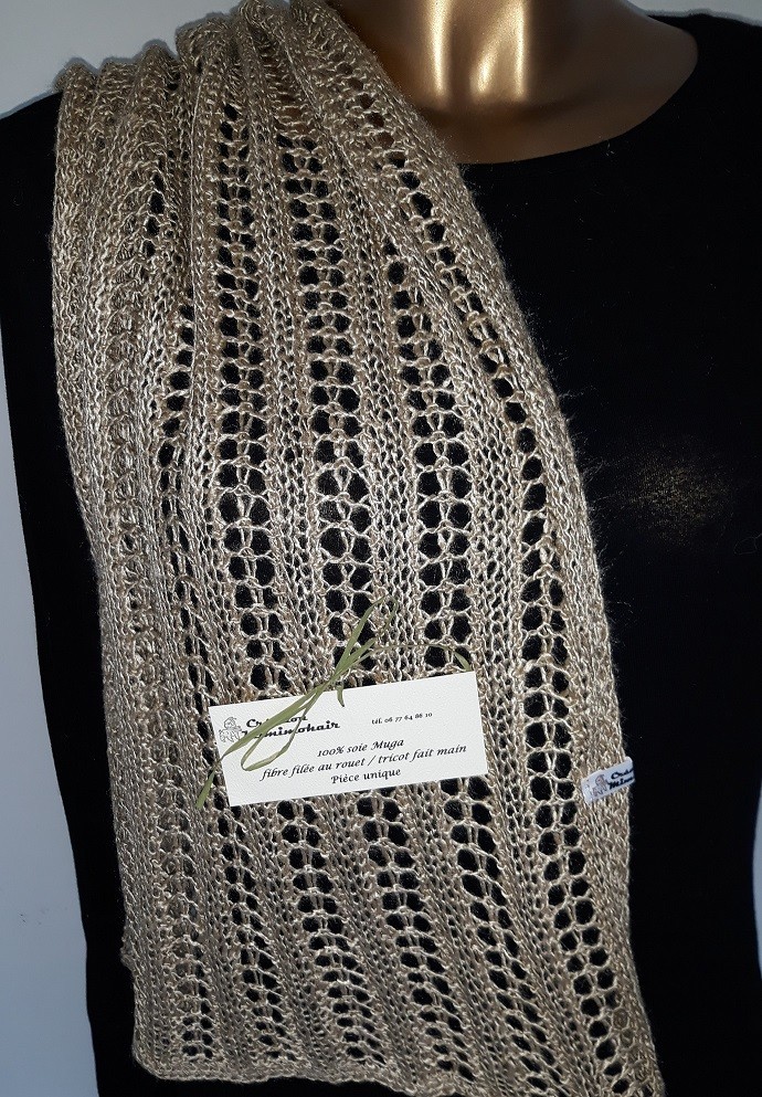 Echarpe 100% soie Muga (origine Inde) filée au rouet par mes soins (18 heures pour cet ouvrage) - couleur naturelle