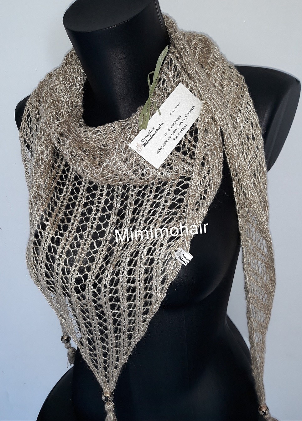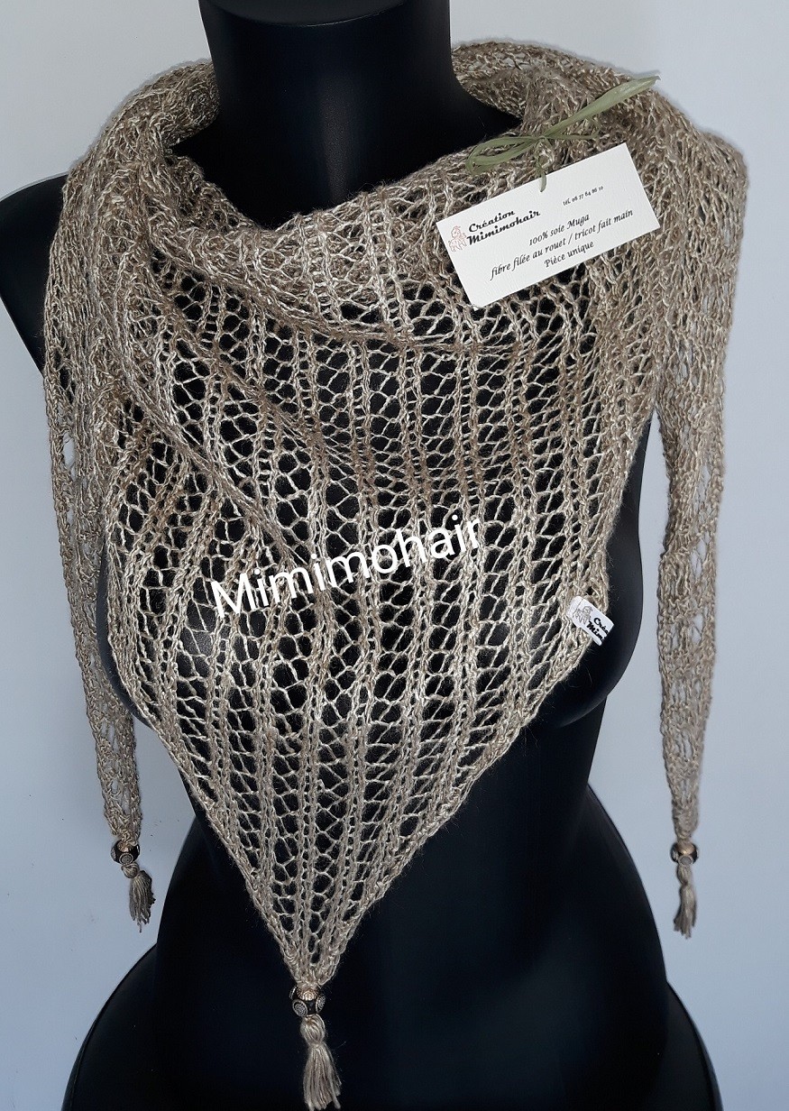 Chèche 100% soie Muga (Inde) filée au rouet, couleur naturelle