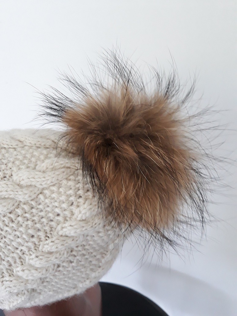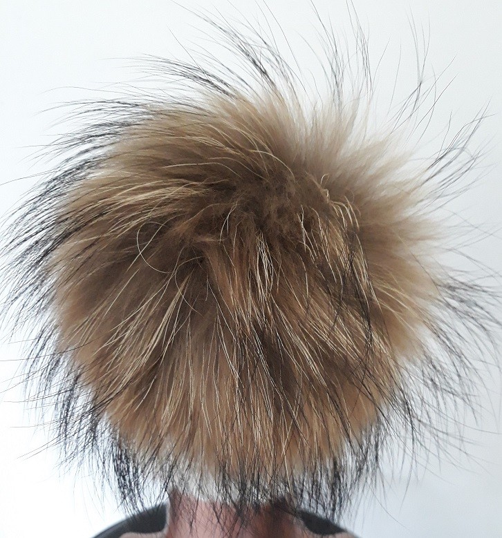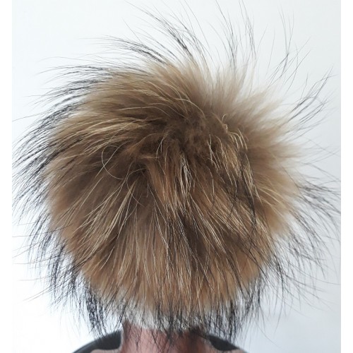 Pompon fourrure fixé par un bouton pression.