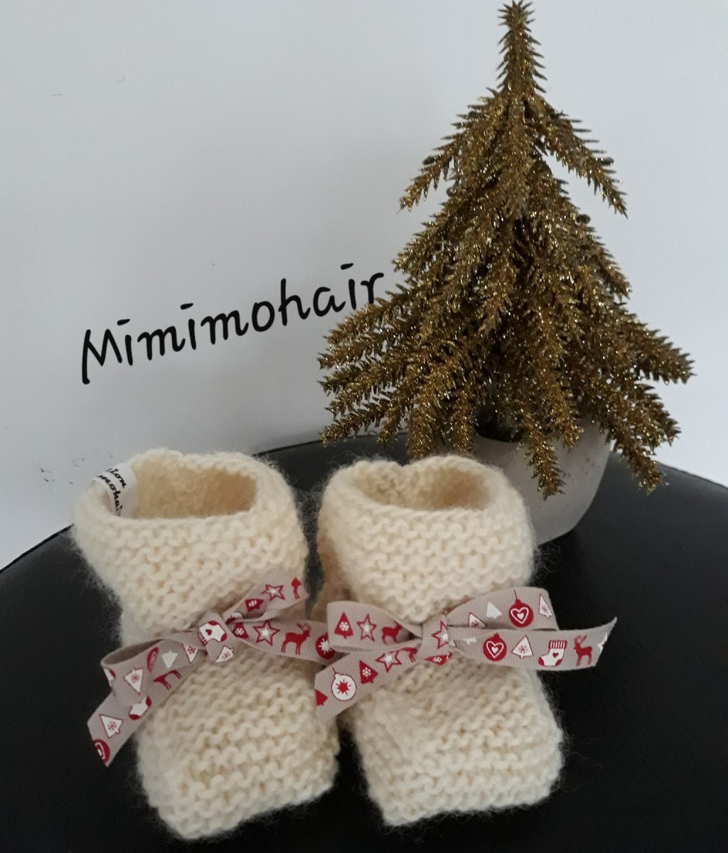 Chaussons bébé 100% mouton Leicester (mouton Anglais) très doux que j'ai filé au rouet